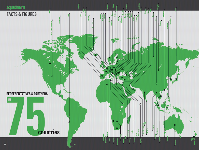 Today, Aquatherm has subsidiaries in Radeberg/Dresden, USA, UK and Carrara/Italy and more than 78 marketing partners
